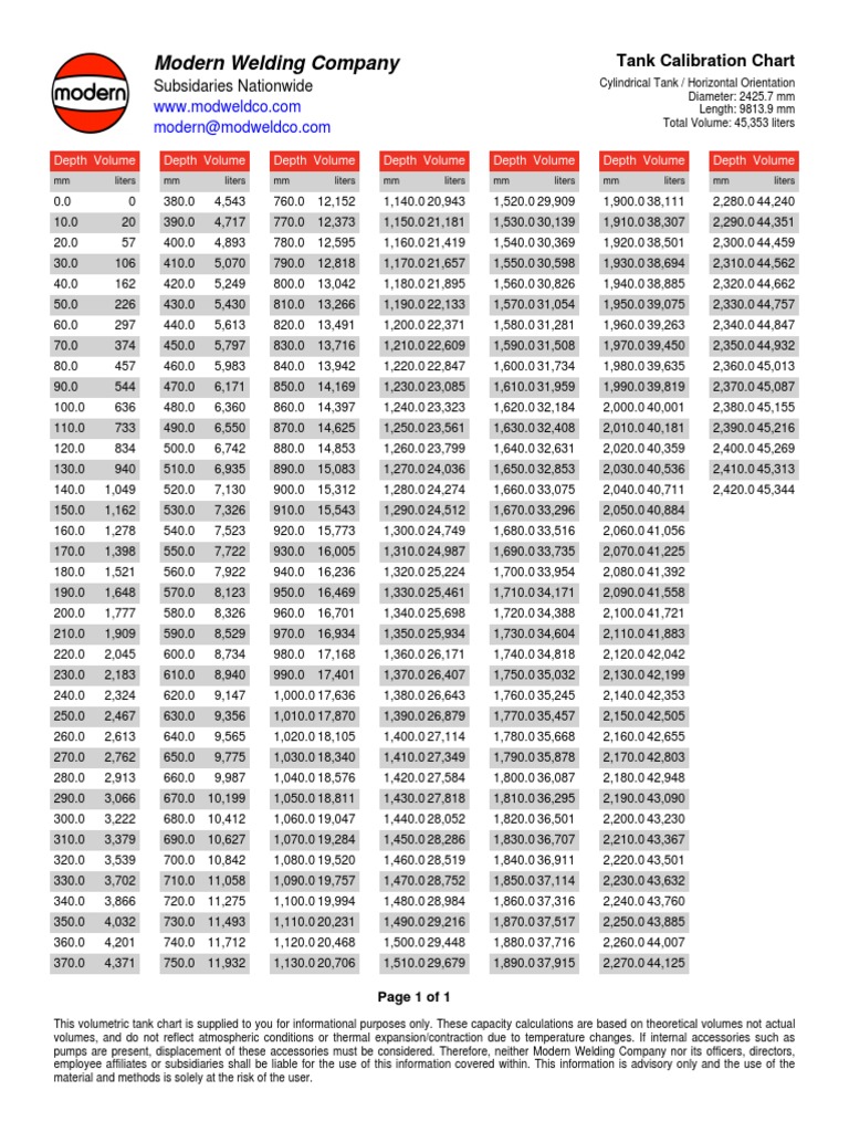 Tank Calibration Chart Calculator O Day Equipment