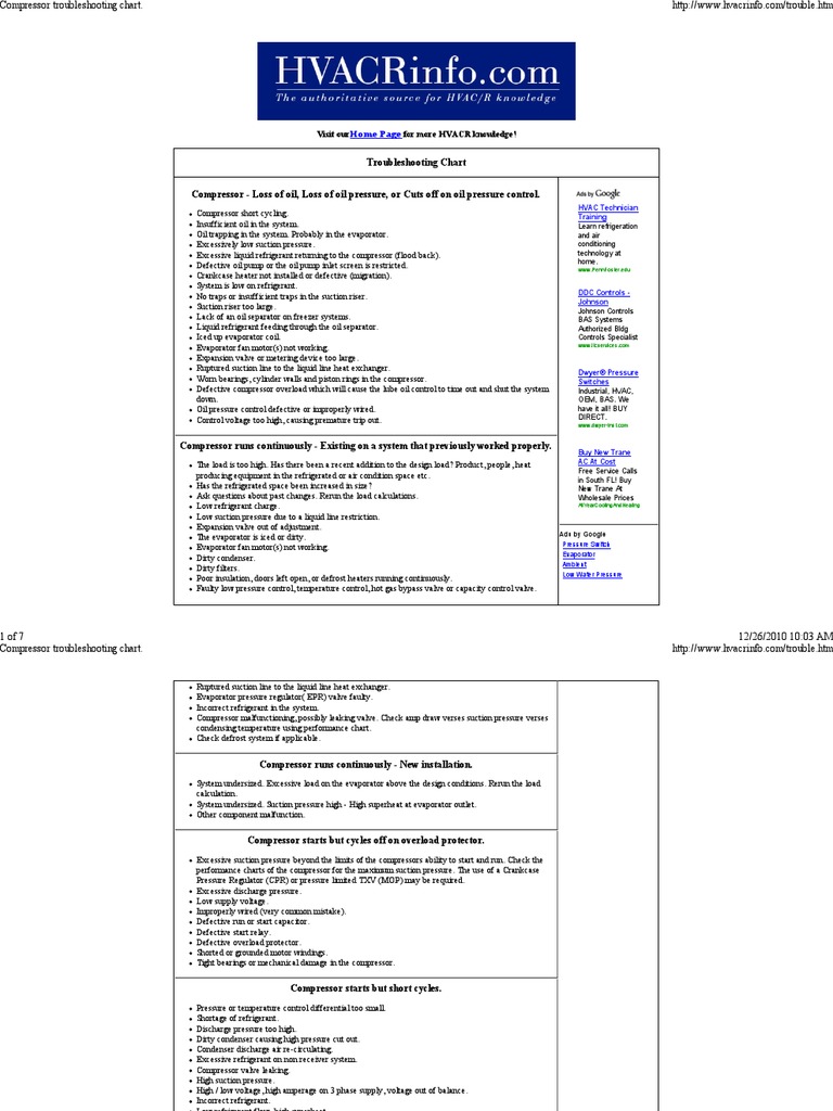 Compressor Troubleshooting Chart Temperature Chemical